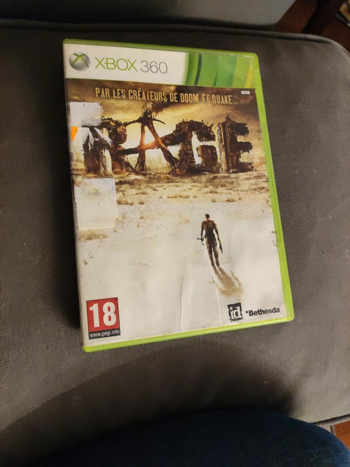 Bonjour je vends ce jeux de xbox 360 rage avec notice et les 3 cds