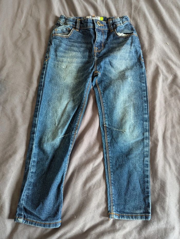 2 pantalons 6 ans. Jean en bon état. Jogging toujours utilisable mais plutôt état satisfaisant.