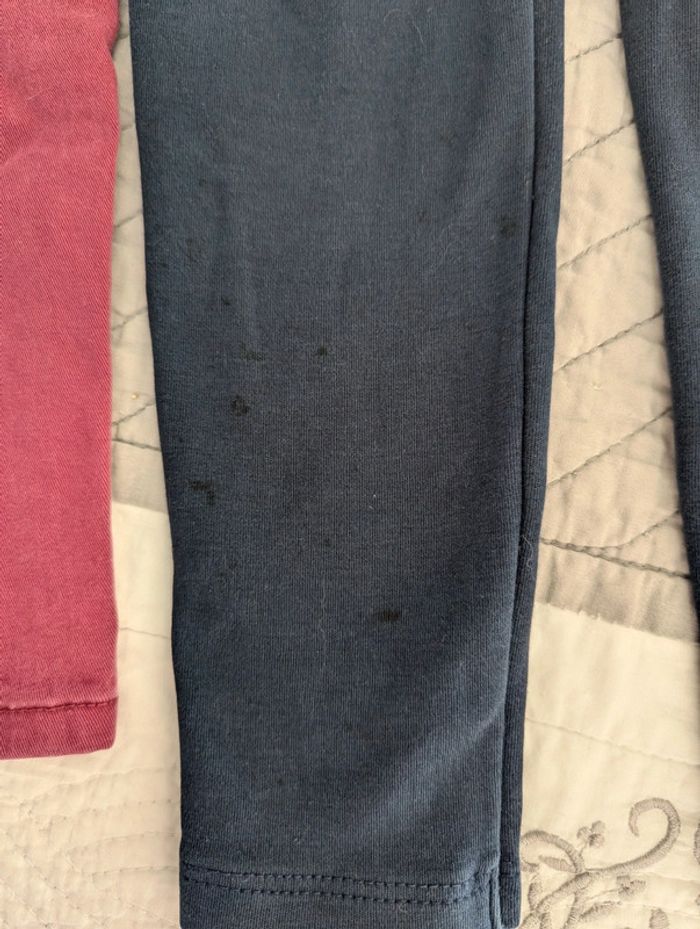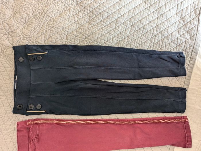 2 pantalons Obaïdi, 3 ans 98cm Bon état. Couleur un peu passé pour le rouge et quelques tâches foncées sur le pantalon foncé, derrière se la jambe.