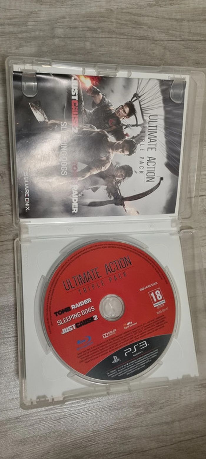 Triple pack ultimate action playstation 3 complet Cd avec quelques micro rayures Tomb raider Just cause 2 Sleeping dogs