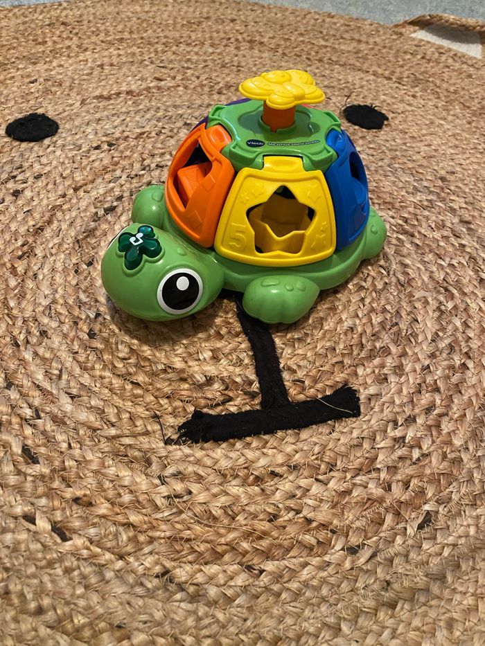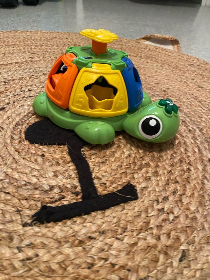 La carapace de tortue est un trieur de formes En appuyant sur le bouton Papillon,un magnifique tourbillon qui libère tous les blocs pour s’amuser