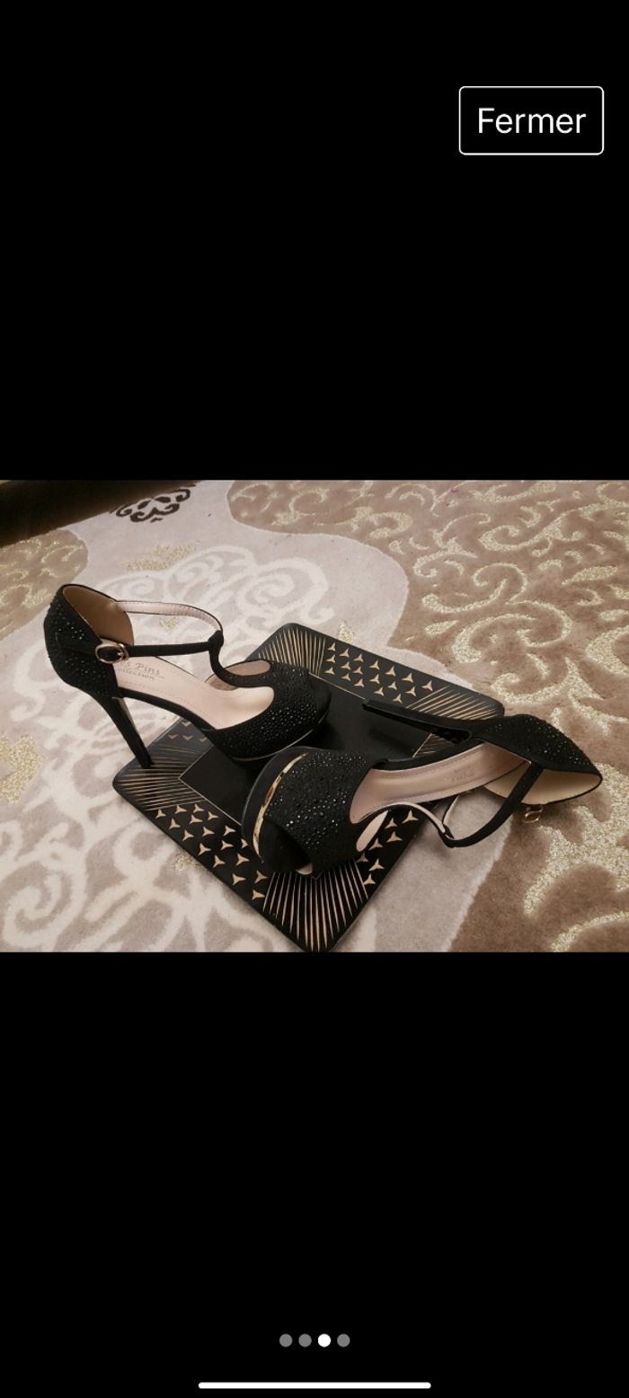 Bonjour, je vends une paire de talons pour les femmes, en très bon état, de la marque Les Pins, de couleur noir pailleté et doré.