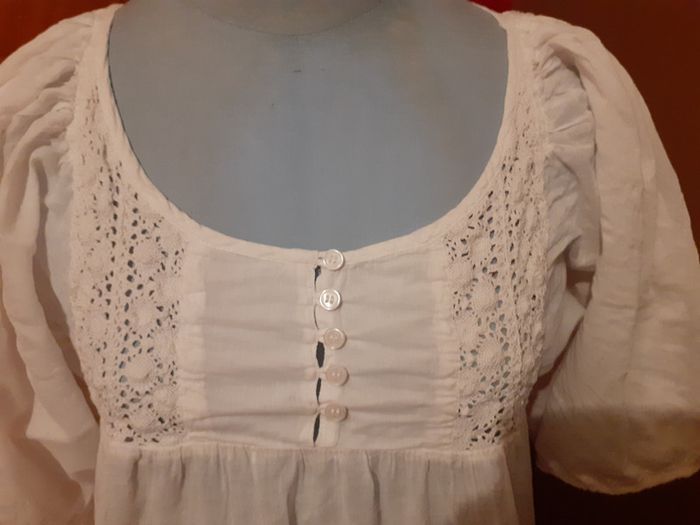 Empiècement boutonné avec dentelle devant Un peu transparente Manches ballons froncés Manches modifiées sur épaules ce qui raccourcit l'emmanchure Marque Bnk baba nuki