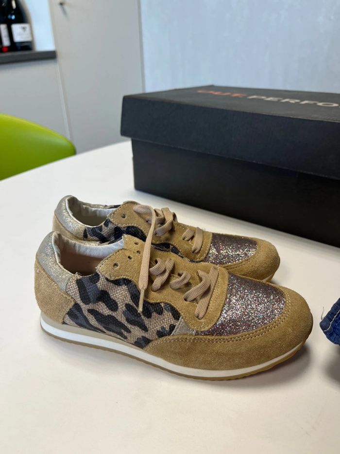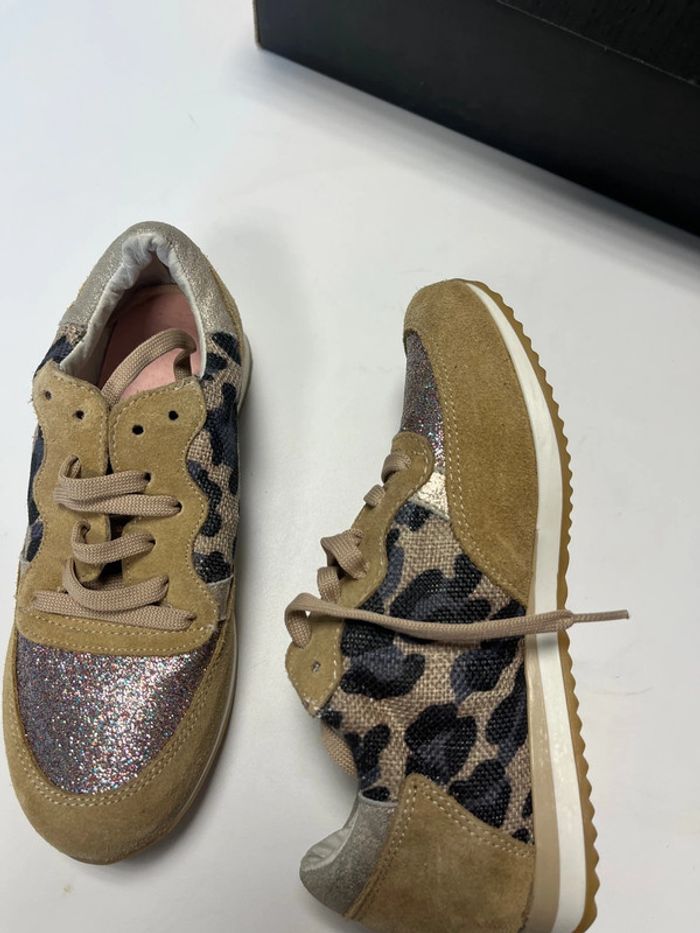 Basket pour fille couleur marron et motif léopard. Marque: reqins , elles sont en daim. Taille: 31 Elles sont neuves, jamais porter.