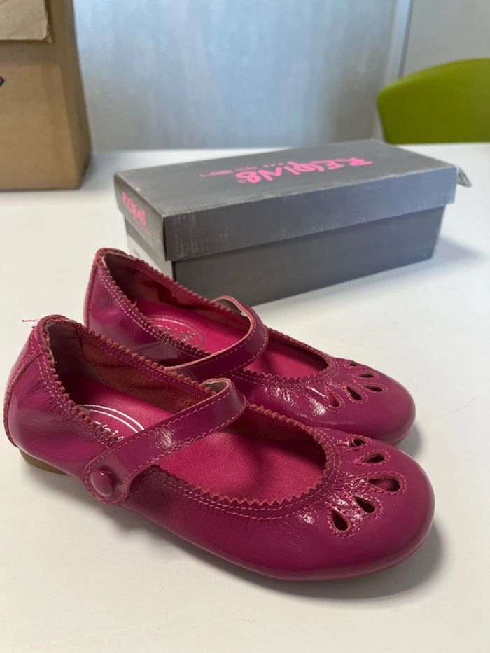 Ballerine pour enfant couleur rose. Marque: Reqins, en cuir verni et fabriqué en France. Taille: 30 Elles sont neuves, jamais porter. Vendus avec sa boîtes d’origine