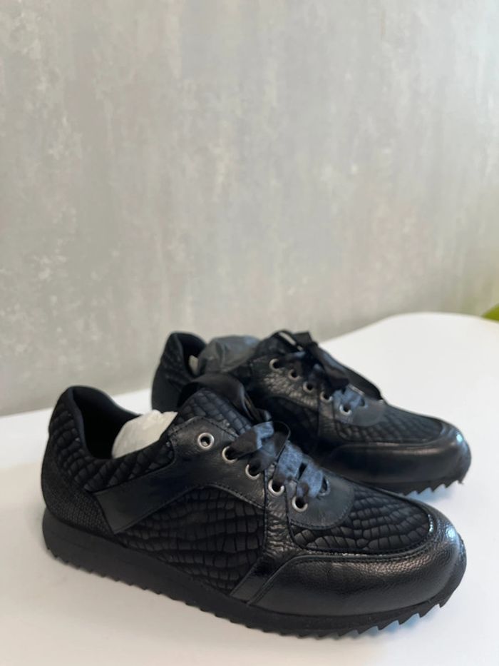 Basket noir sans marque en cuir. Taille: 37 Elles sont neuves et vendus avec boites
