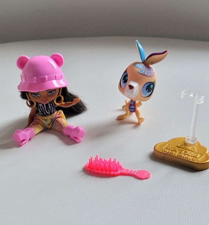 Mini barbie (10 cm) et accessoires (portant, brosse) Lapin LPS Littlest Pet Shop