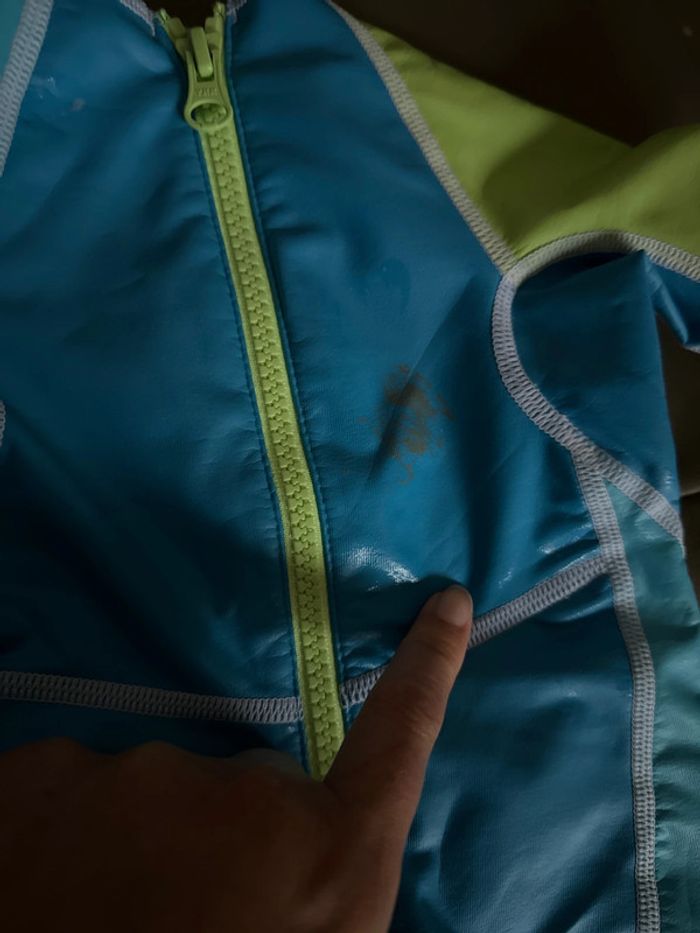 Combinaison piscine Bon état tache voir photo Je pense scotch marron qui a du coller dessus je ne sais pas Acheté mais jamais utilisé