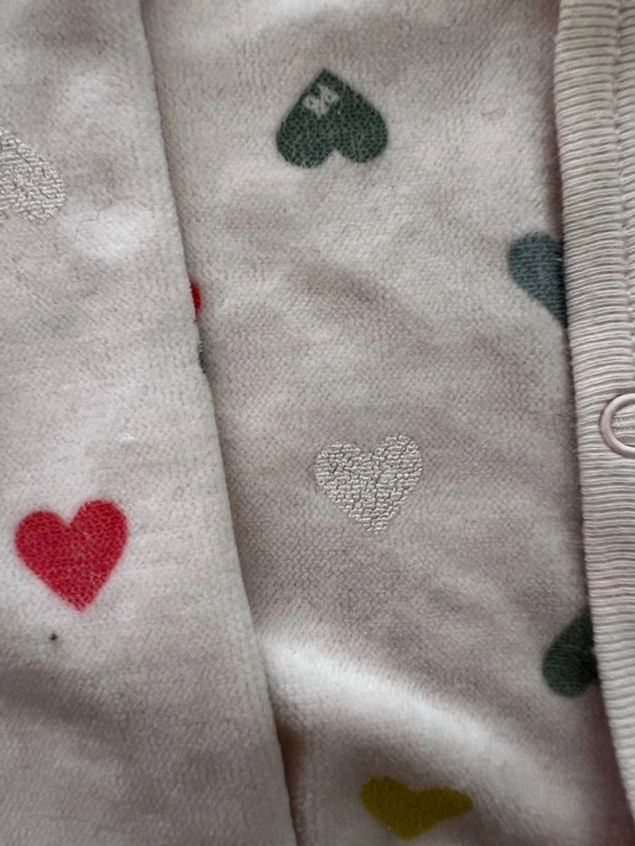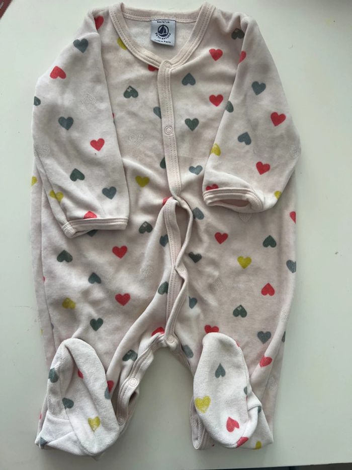 Pyjama petit bateau taille 6 mois en bon état mais montre des signes d’usure au niveau des motifs petit cœur à voir sur photo #6mois #pyjama#bebefille#
