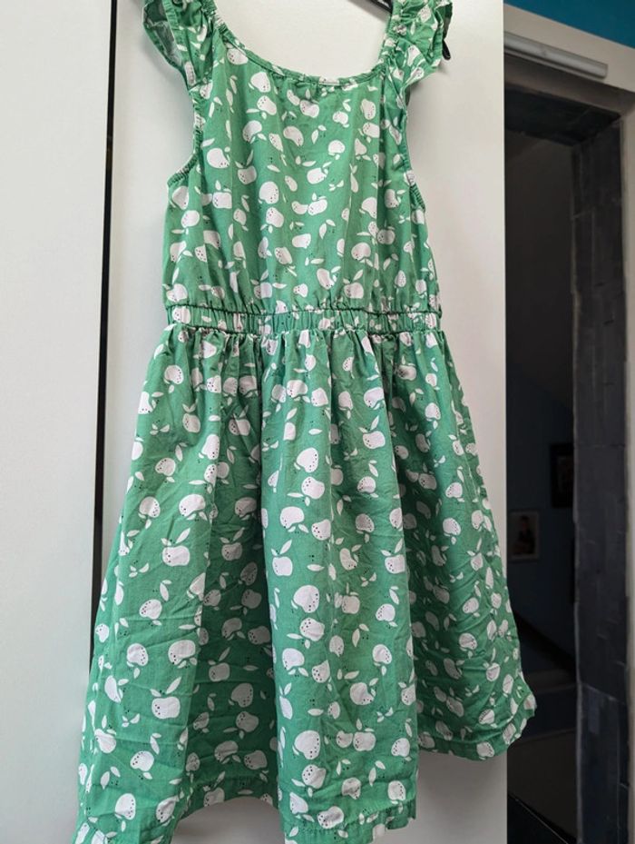 Robe vert pomme avec des dessins de pomme 🙂 Taille 8 ans