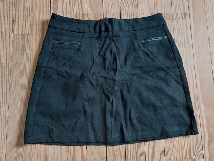 Jupe fluide / Bash / courte / fleurie / Marine / doublure / taille S-36-1