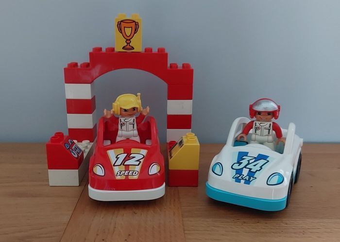 Rare : Lot Lego Duplo voitures de courses / race cars Les 2 voitures sont à frictions : n°12 "speed" et n°34 "play" Réf 10947 pas complet voir mes photos Très bon état