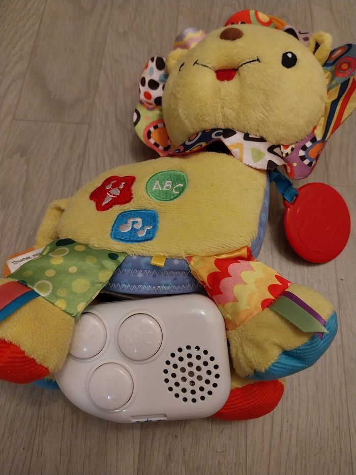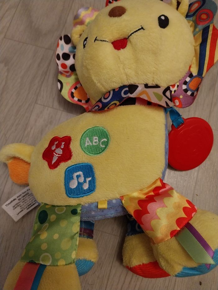 Timothée mon lion d'activités Vtech en très bon état et fonctionne parfaitement Exellent jeu d'éveil Peut être accrocher Coloré et plusieurs matières 3 touches le mécanisme à l'intérieur peut être retirer pour le passer au lavage