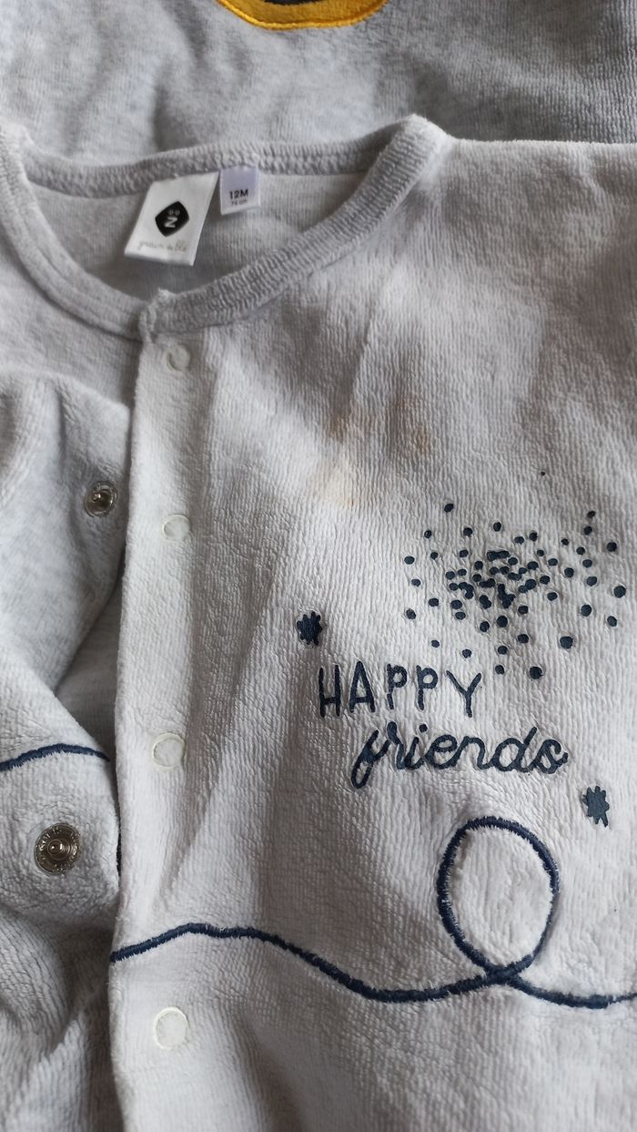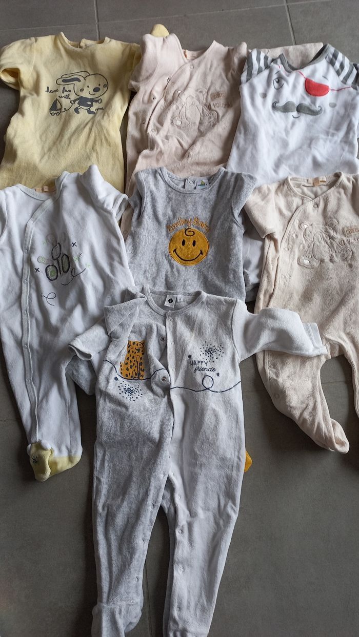 Vends pyjama bébé taille 12 mois. Plusieurs marques. Le blanc est tache (voir la photo). Ils restent en bon état.