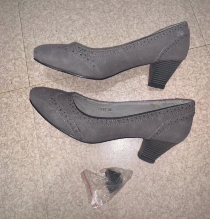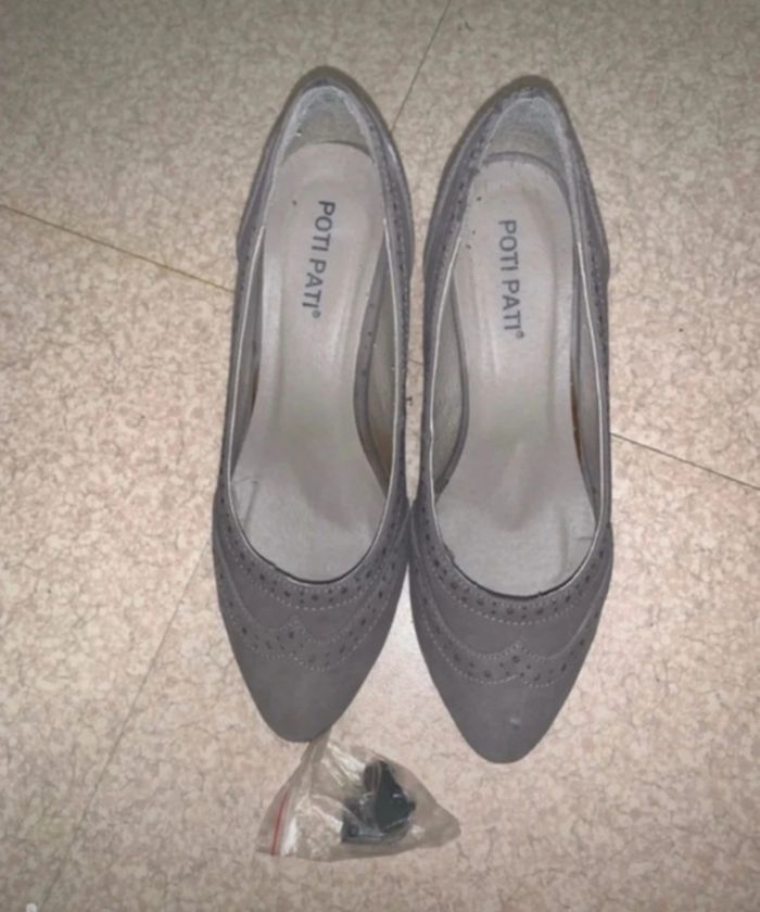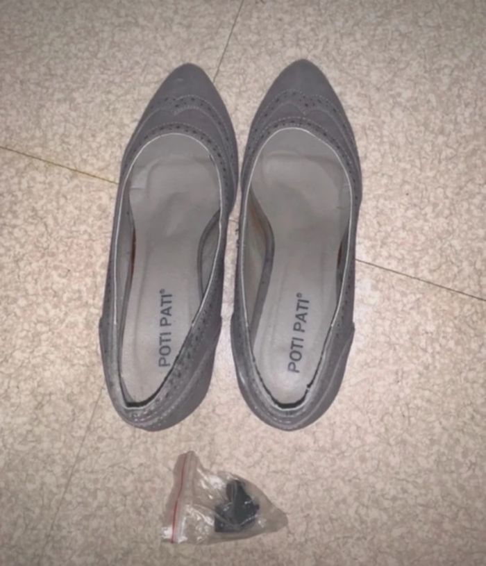 Escarpin Gris taupe Pointure 38 vendu avec embouts pour semelle des talons Poti Pati Neuf mise qu une fois mais commence a s abîmer sur place dans sa boîte