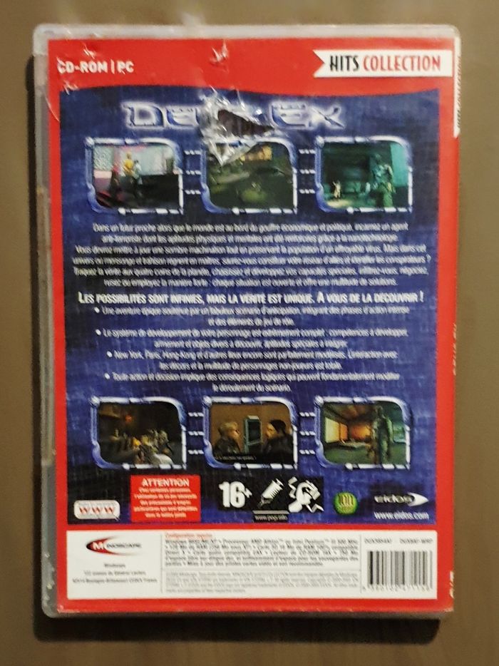 Bonjour Je vends un Jeu deus ex, sur Pc. Il est en bon état. La pochette est un peu abîmé mais le disque n'a rien. N'hésitez pas, j'envoie rapidement.sa