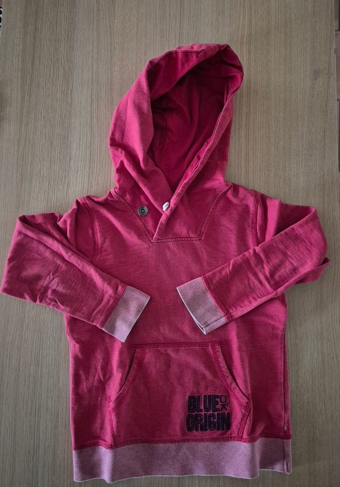Sweat capuche et poches ventral En très bon état général Rouge Okaidi Petite tache de feutre très discrète sur poche et bas de manche