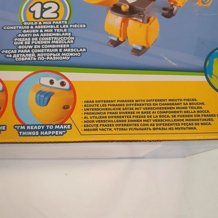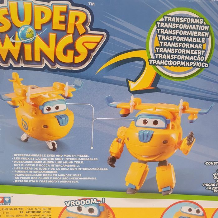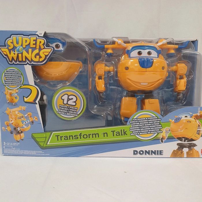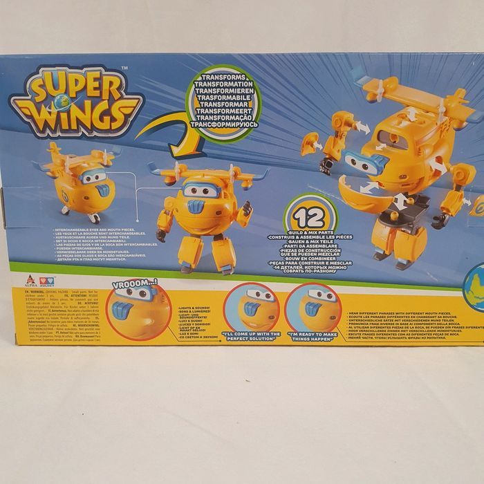 Donnie se transforme en avion ou en robot Effets sonores et lumineux yeux et bouche interchangeables Écoute les différentes phrases Assemble les 12 pièces #superwings #donniesuperwings #donnie #transformable #superwingstransformable