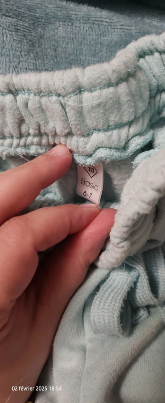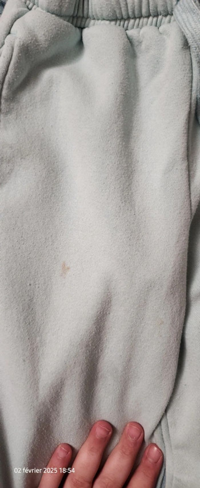 Jogging 6 ans. Tex. Bleu. Tâche a l'avant et bouloche 50 pourcent des 5 articles #rebec75_vetement_6ans_fille
