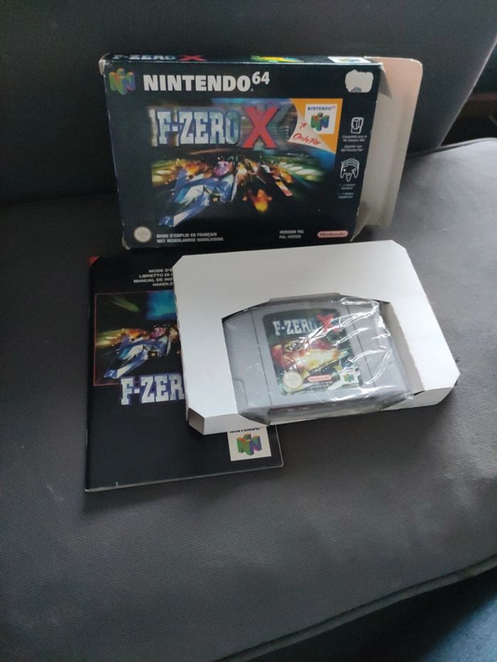 Bonjour je vends ce jeux de nintendo 64 f zero x , en boite avec cale et notice, petite déchirure sur la boîte
