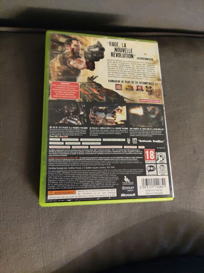 Bonjour je vends ce jeux de xbox 360 rage avec notice et les 3 cds