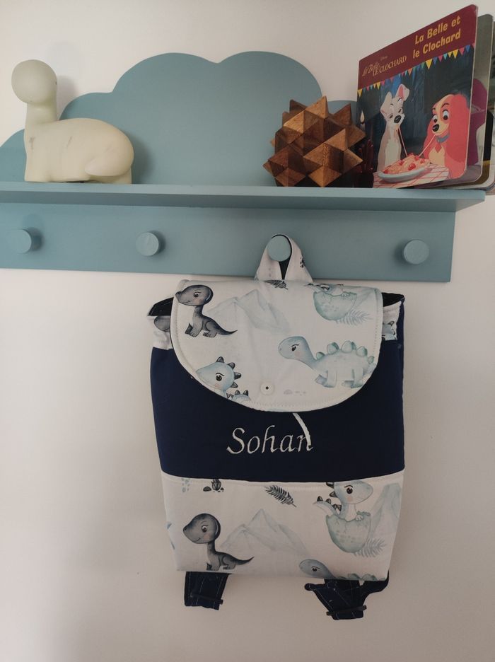 Sac à dos enfant maternelle Hauteur : 30 cm Largeur : 25 cm Anses réglables Rabat a pression Liens pour rétrécir l Ouverture du haut Prénom brodé sur demande couleur au choix