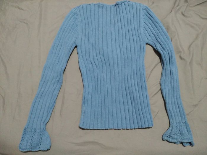 Petit haut bordeaux avec des fleurs ajourés et pompons