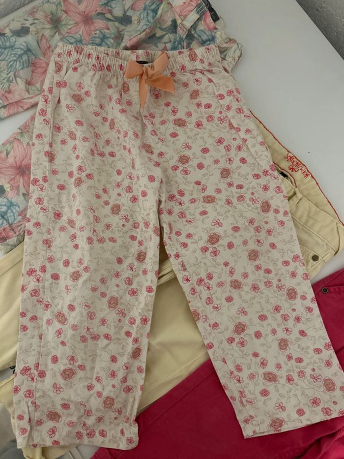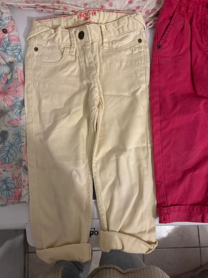 Lot de 4 pantalons dont : Un à fleurs orchestra Un jaune sergent major Un rose orchestra Et un blanc à fleurs sergent major léger