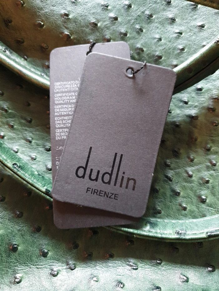 Sac a main Dudlin Hauteur 32 cm Longueur 30 cm Largeur 16 cm Fermé par une pression au centre Poche intérieur qui s'éccroche de chaque côté par pressions (voir les photos) Je ne sais pas la matière, il a l'odeur du cuir mais je ne peux pas le certifier. Neuf avec étiquette