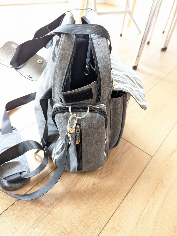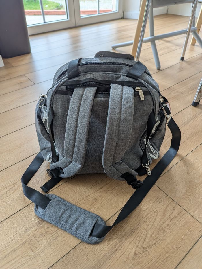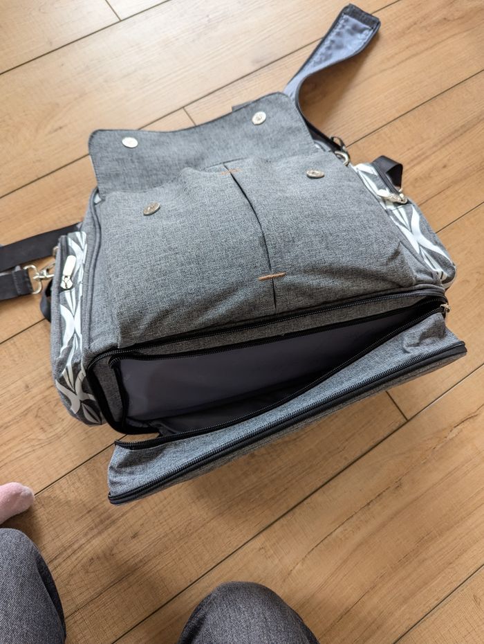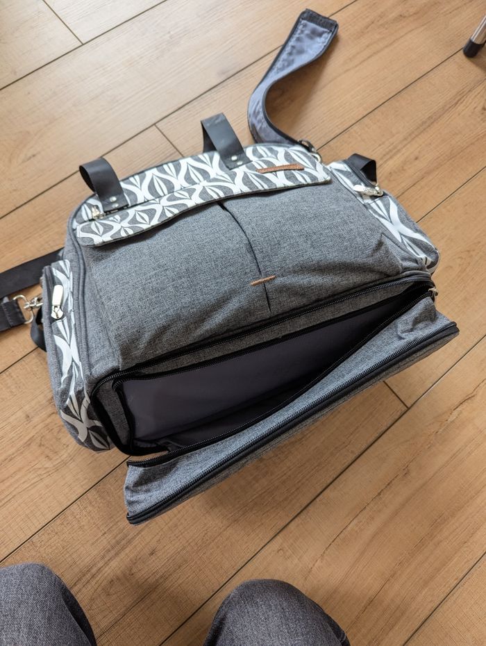 De la marque lekebaby Sac à langer en parfait état et peu utilisé. Le sac peut se porter en bandoulière ou sur le dos avec des bretelles dissimulées. Il peut aussi s'attacher à la poussette Il dispose de nombreux avantages : -Une poche avec 2 compartiments isothermes pour les biberons. -un fond extensible pour obtenir une poche supplémentaire. (Pour y mettre des couches par exemple) -Deux pochettes sur les côtés pour y mettre les lingettes et sacs à couches. - des poches intérieures.