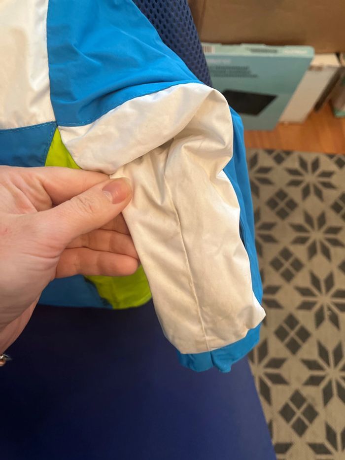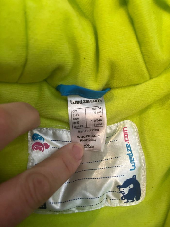 Blouson/veste de ski mixte bleu vert et blanc Bien épais - le blanc des manches est un peu sale (voir photo). N’a pas été lavé pour ne pas perdre l’étanchéité. Marque Wed’ze - décathlon Taille 4ans #4ans_sam33antha91