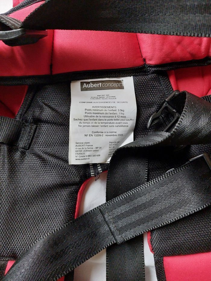 Porte bébé Aubert concept Dès la naissance ; pour de 3.5 à 11kg Noir et rouge Très bon état