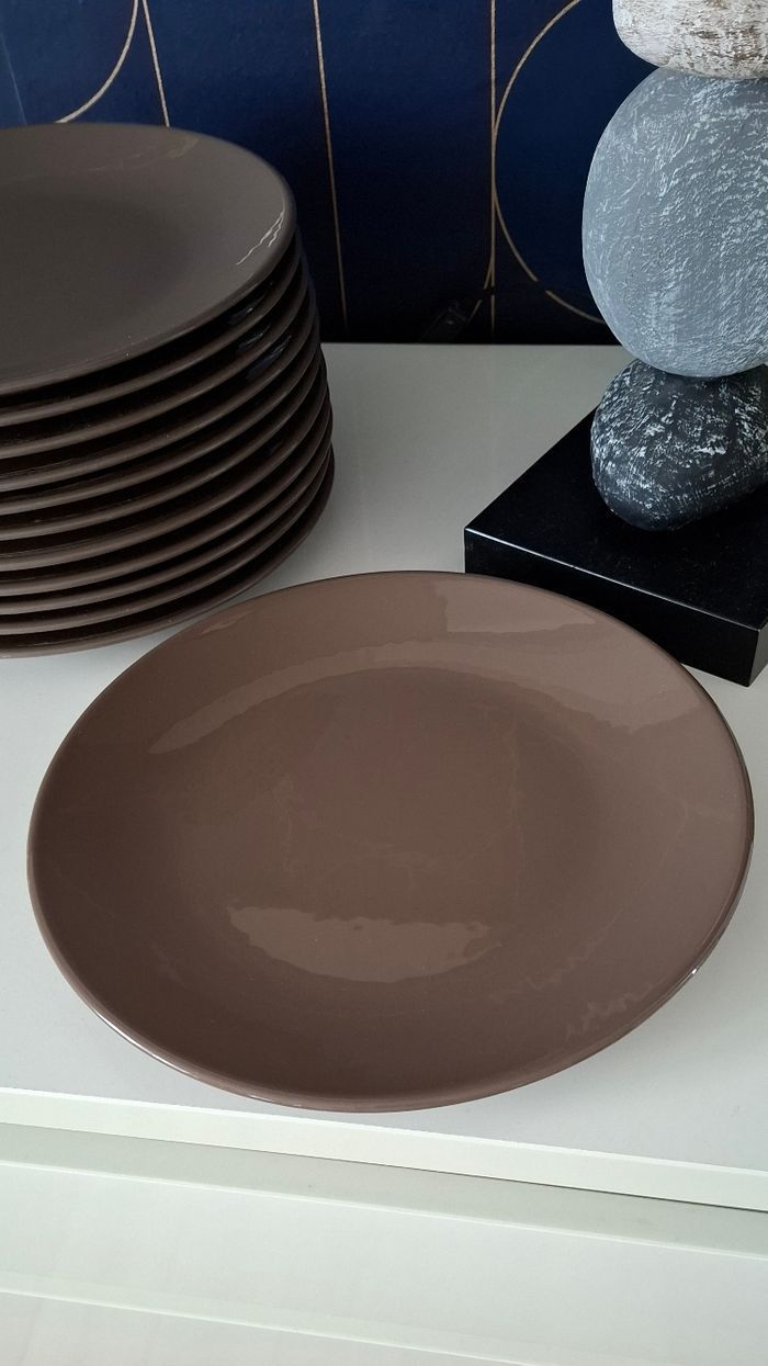 12 assiettes plates marron, diamètre 25,5 cm, très bon état