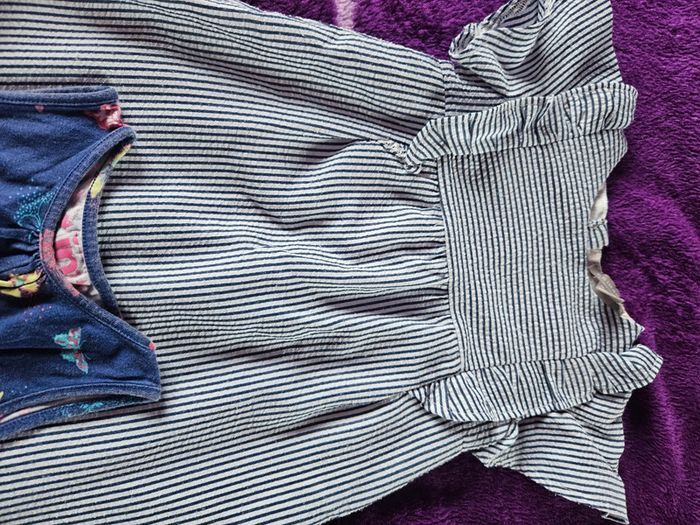 #kat091211_18_24mois Lot de 5 robes différents marques Mrimark, gemo, pat & ripaton Cœurs, marinière, fleuri, papillon Pas de taches ni de trous Peu portés, seul la robe papillon est un peu délavé, marqué 2ans mais taille petit N'hésitez pas à créer des lots et à faire des offres 😊