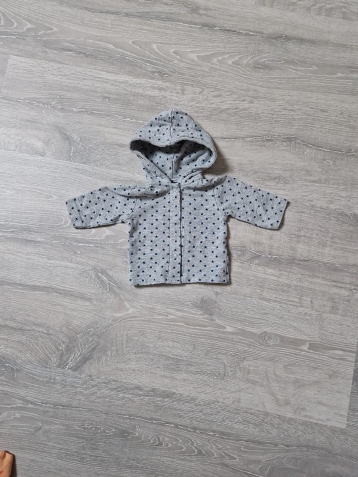 Gilet avec ouverture pressions. Taille naissnace, bon état.