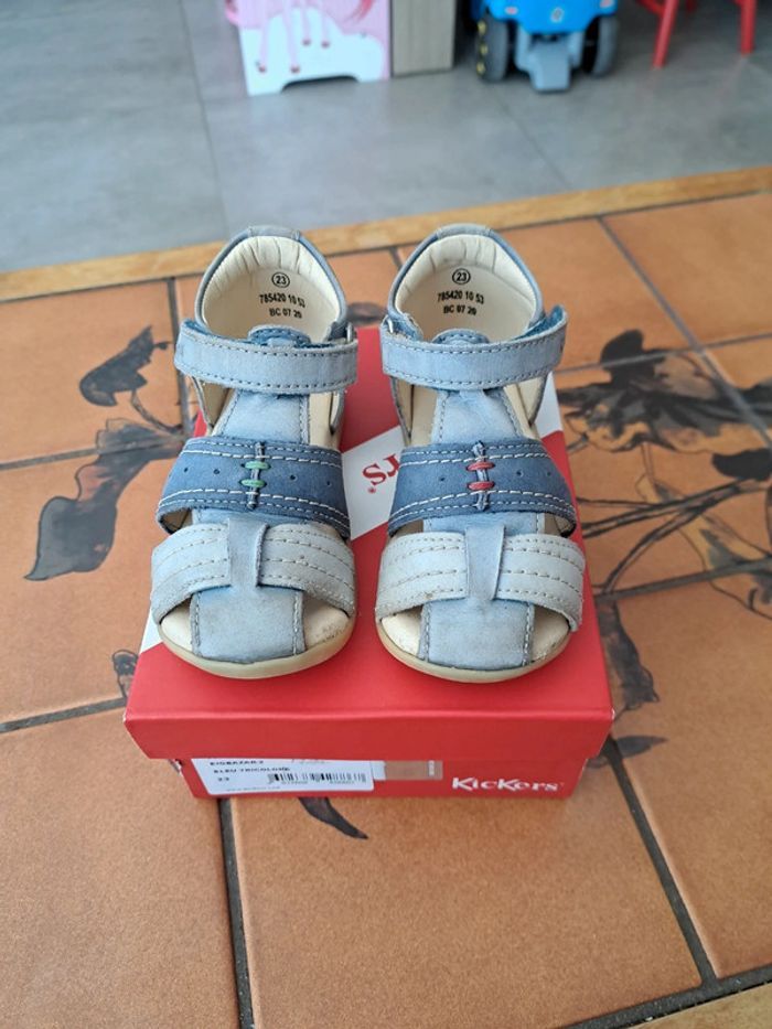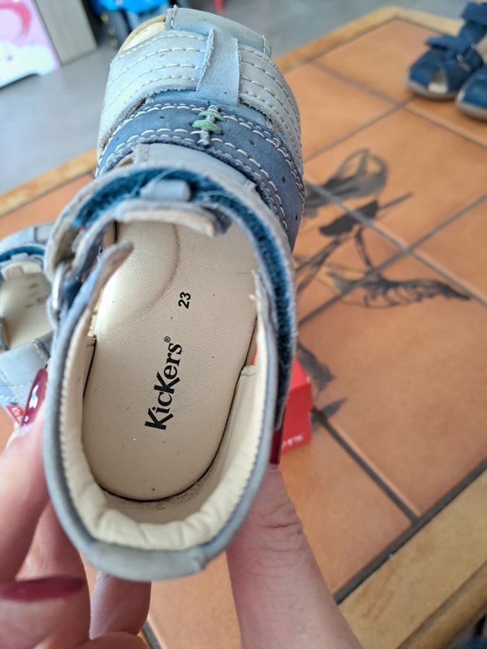 Sandales bigbazar de Kickers, état satisfaisant, le cuir à été décoloré par le soleil. Mais les semelles intérieures et extérieures sont en très bon état. N'hésitez pas à consulter mon dressing car la réduction des lots est activée !!!