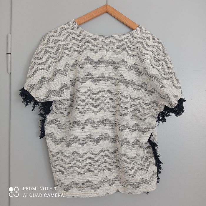 Petit haut bordeaux avec des fleurs ajourés et pompons