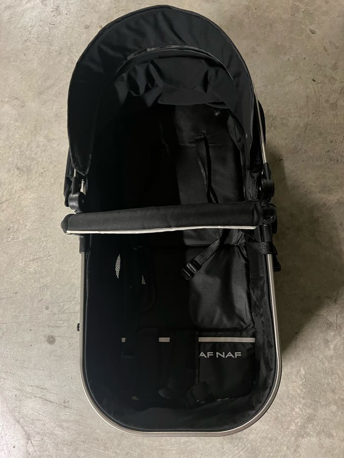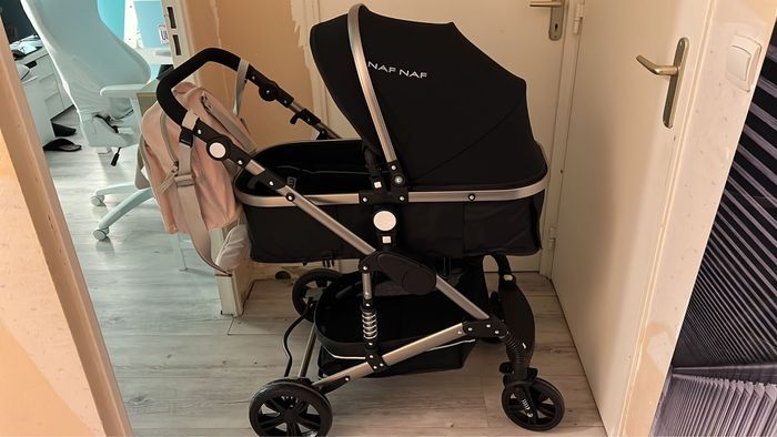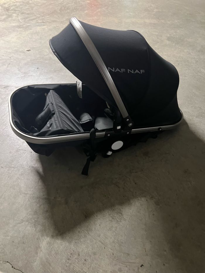 REMISE EN MAIN PROPRE ( à venir chercher sur place ou je peux me déplacer dans l’île de France) Vend pousette, cosy et landeau utilisé 1 an marque Naf Naf quelques rayures et sur le landeau je n’ai plus les protecteur des lanières de la ceinture et sur le cosy je n’en possède que 1 protection sur 1 lanière , il me manque la 2