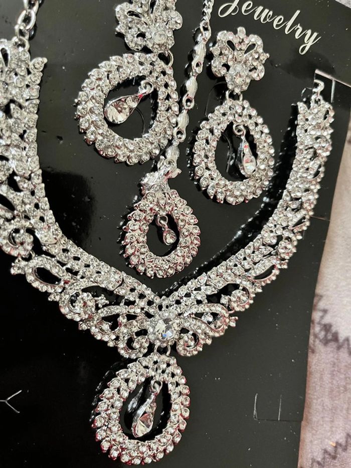 Magnifique ensemble bijoux très classe et chic À strass argenté Idéal pour les grandes occasions Super idée de cadeau Ou pour un mariage une mariée Neuve jamais utilisé #dressingnanabijoux Couleur blanche et argenté Envoi rapide et soigné #Mariage #mariée #bride #princesse #couronne stylée #chic #classe #printemps #été #vacances #longue #robe #blanche #noire #cérémonie ideecadeau cadeau #anniversaire #déguisement #bijoux #cheville #collier #pendentif #strass #paillettes #breloques