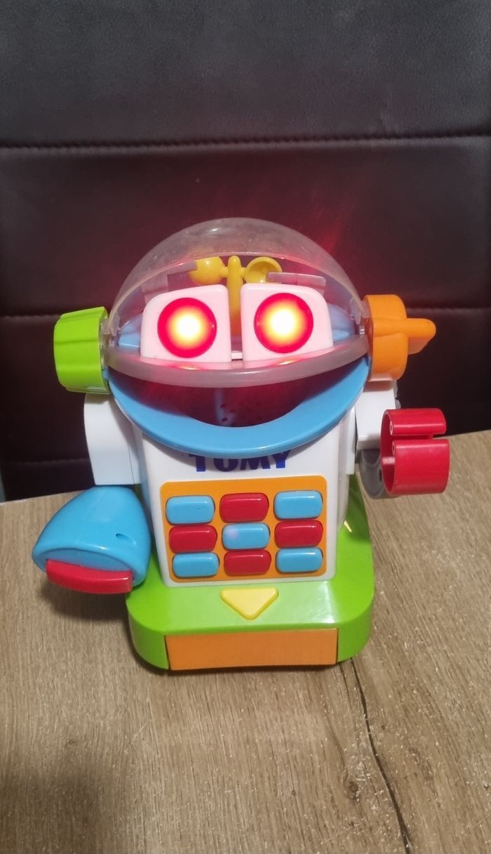 Robot interactif, petit caissier pour bébé Lui mettre les chips en bouche pour le nourrir Ses yeux s'allument, ses bras bougent Tomy Très bon état