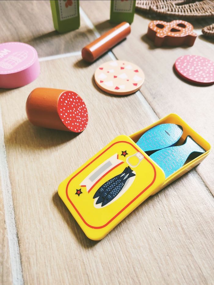 🐟Jeu d'imitation - Dinette en bois lot aliments divers et bouteilles huile d'olive- JB1498 🎀Convient dès l'âge de 2 ans 🎀 Magnifique ensemble de jeux d'imitation en bois représentant divers aliments pour compléter une cuisine d'enfant ou une marchande. 🎀 Ces jouets sont parfaits pour développer l'imagination et la motricité fine des plus petits. 🎀 Le lot comprend : ✨ 2 bouteilles d'huile d'olive (vertes avec illustrations). ✨ 1 boîte de sardines avec son couvercle amovible et ses 2 poissons bleus. ✨ 1 bretzel typique. ✨ 1 œuf au plat réaliste. ✨ 1 saucisson (pièce épaisse). ✨ 1 saucisse de type Francfort. ✨ 1 tranche de jambon (ronde, rose). ✨ 2 tranches de charcuterie (salami/mortadelle). 🎀Jouet de seconde main pouvant comporter quelques petites traces ❇️N'hésitez pas à créer un lot pour économiser sur les frais de port❇️ Premier âge, Jouet bébé, Jouet d'activité, Jouet ludique, Jouet eveil, Mémorisation, Memoire, aptitude, motricité, jeu Adresse, Montessori, jeu bois, Jouet bois, Jouet vintage, Jeu adresse, jeu apprentissage, dextérité, jeu sensorielle, jeu educatif, activités et Jouet pour bébé, trier empiler, encastrer, jeux et jouets