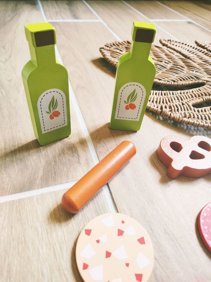 🐟Jeu d'imitation - Dinette en bois lot aliments divers et bouteilles huile d'olive-  - photo numéro 1