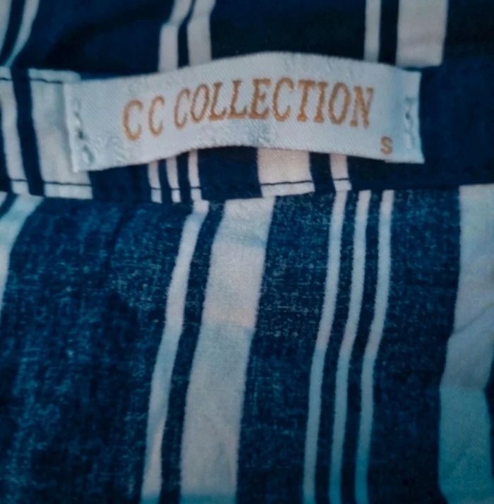 Tunique robe à rayures, taille S marque CC Collection, longueur 80cm, largeur 48cm, longueur épaule à aisselle 20cm, longueur manche 36cm.