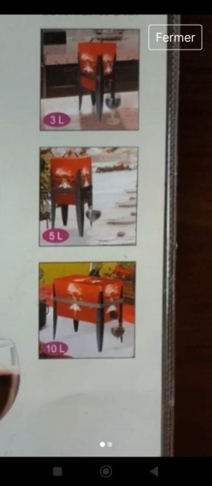 Support fontaine pour boisson en cubi que ce soit vin jus fruits ou autre Adaptable pour différents formats produit neuf acheté un repas d'anniversaire n'a pas servi Deux articles identiques sont disponibles ils sont en vente au prix de 18 € les deux