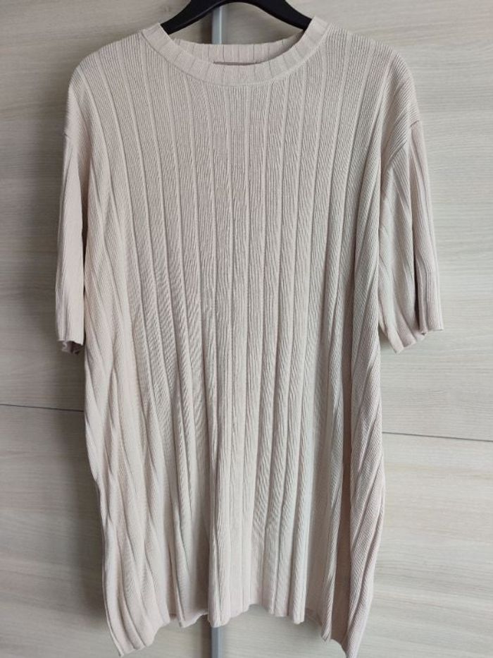 Pull manches courtes, peut servir de robe ou pull long avec un legging. Arrive au dessus des genoux . En très bon état