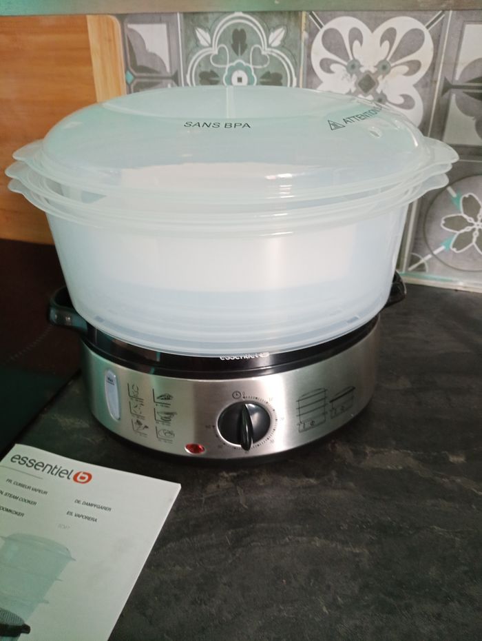 Cuiseur vapeur et riz Essentiel B 3 paniers vapeur et un panier à riz En parfait état de fonctionnement Avec sa notice Possibilité de remise en main propre