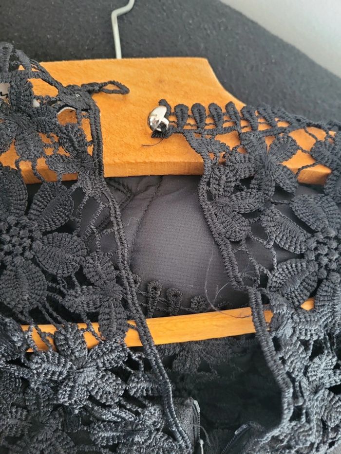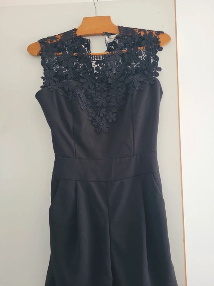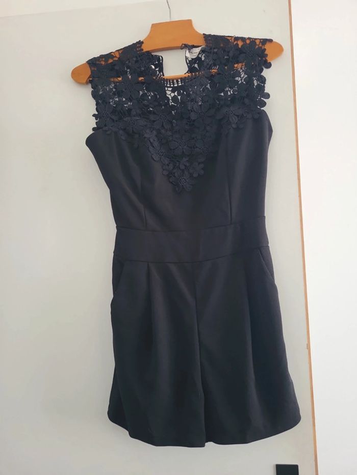 Combishort noire taille s, longueur totale environ 78 cm en bon état. L'étiquette se détache de la dentelle.