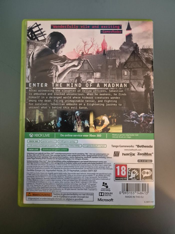 The Evil Within Xbox 360 Bon état général, petites griffes d'utilisations. Version néerlandaise jouable en anglais. Vendu comme sur les photos. Envoi sous 24h sauf les dimanches et jours fériés si achat réalisé avant 20h. (Mondial Relay, Bpost, UPS) Pour les envois Homerr, envoi sous 48h du lundi au vendredi.
