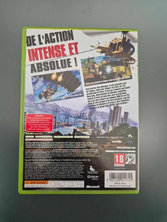 Just Cause 2 XBOX 360 Excellent état. Bon état général, petites griffes d'utilisations. Envoi sous 24h sauf les dimanches et jours fériés si achat réalisé avant 20h. (Mondial Relay, Bpost) Homerr et UPS envoi sous 48h si achat réalisé avant 20h.