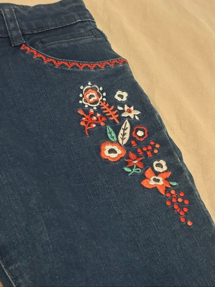 Neuf. Broderies et bouton pression. Ajustable grâce aux élastiques à l’intérieur